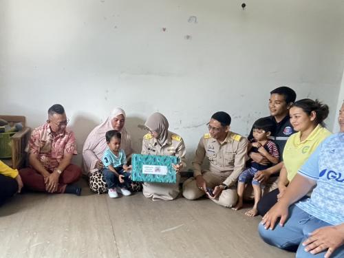 ในการนี้นางสาวสุนีย์ มาหะ พัฒนาการจังหวัดยะลา ได้มอบถุงยังชีพให้แก่นางสาวกันตีนี ตือมิงหม๊ะ แม่ของเด็กชายชารีฟ มันแน เพื่อใช้ในการดำรงชีพ เป็นขวัญและกำลังใจในการส่งมอบความสุข “สุขใจช่วยเหลือและแบ่งปัน”
