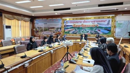 กองทุนพัฒนาบทบาทสตรีจังหวัดยะลา และพนักงานกองทุนพัฒนาบทบาทสตรี เข้าร่วมการประชุมเพื่อชี้แจง และรายงานผลการดำเนินงานกองทุนพัฒนาบทบาทสตรีจังหวัดยะลา