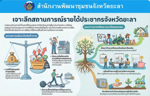 ข้อมูลแนวทางการพัฒนาคุณภาพชีวิตด้านการสร้างรายได้จังหวัดยะลา สู่ความยั่งยืน โดยวิเคราะห์สถานการณ์เชิงลึกของจังหวัดยะลาด้วยระบบ CDD AI ผู้ช่วยอัจฉริยะ และแนวทางการพัฒนา